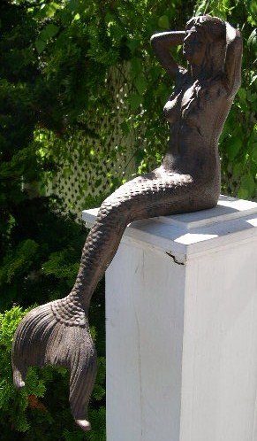 8 of 9 people found the following review helpful Amazon Verified Purchase This review is from: Cast Iron Sitting Mermaid Figure Nautical Decor Statue (Kitchen) The sitting mermaid is probbly my favorite Mermaid! She is larger than I thought she would be, and finely detailed! She is sitting on a bench in the garden near her sister, who is laying down, they look beautiful together! Looks like they just jumped out of the bird bath nearby! 6 of 7 people found the following review helpful By T. Griffith "Griff's Girl" (Newport, RI) - See all my reviews Amazon Verified Purchase This review is from: Cast Iron Sitting Mermaid Figure Nautical Decor Statue (Kitchen) Nice size mermaid. Looks great sitting on antique trunks or a table... pretty heavy for a shelf. Fits in great with a nautical or seashell/beach theme! 2 of 2 people found the following review helpful Amazon Verified Purchase This review is from: Cast Iron Sitting Mermaid Figure Nautical Decor Statue (Kitchen) This is a lovely piece and adorns my back-porch railing ....very nice detail, color and a beautiful flowing tail.Love it.... |