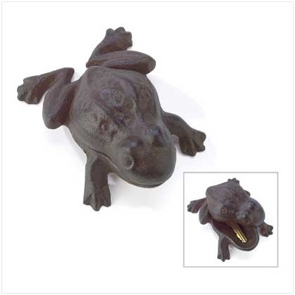 Cute little frog has a clever secret: When tucked in the garden beside your entryway, he conceals a spare key within his chubby belly! A charming - and smart - way to hold an emergency house-key close at hand but away from prying eyes. Iron. 4 1/2 inches x 3 1/4 inches x 1 3/4 inches high.