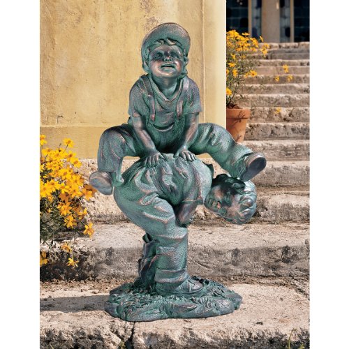 Capturing the carefree freedom of a summer day, playing children leap frog each other in this exquisitely sculpted boy statue inspired by a classic original. Based on the 1915 original by artist Jose Cardonas (1878-1923). Our detailed, Design Toscano-exclusive garden statue includes chubby cheeks and lace-up sneakers and is cast in quality designer resin with a high-profile verdigris bronze finish meant for home or garden focal points. 10"Wx6"Dx16"H. 6 lbs.