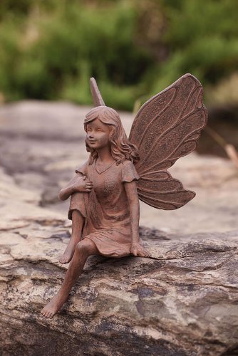 Miranda an Earth Fairy has come to your garden to sit for a while. An added element to your home or garden, she will bring good luck to your garden and maybe even a rainbow. Included with Miranda is a text tag that reads, "Miranda peacefully sits and soaks up the suns rays after a passing shower. Her calming presence inspires a rainbow to appear in the distance." Crafted with intricate detail, she is the perfect piece to add to your collection of fairy statuaries.