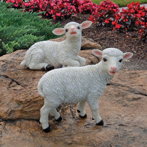 "Our adorable baby lamb statues recall visions of sheep scampering across well manicured English estates. Realistically cast in quality designer resin and painstakingly hand-painted exclusively for us, these farm animal statues add a distinctively European touch to your lawn or garden. Whether you choose one baby lamb figurine or an entire flock of sheep statues, you'll revive a classic tradition with these Design Toscano-exclusives! Another quality garden animal statue from Toscano! Sitting Lamb: 15""Wx6""Dx9""H. 2 lbs. Standing Lamb: 15""Wx5""Dx13""H. 5 lbs."